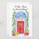 This watercolor new home for the holidays announcement card with a red front door with pine boughs and trees, presents and a wreath, and your family name above the door would be perfect to send to your friends and family when you have moved to a new home before the holidays. The sentiment on the back is customisable so you can send a holiday greeting unique to you. Get enough so that everyone you know and love has your new address and phone number. They'll be so excited about your big move!