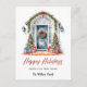 Celebrate the joy of the season and the excitement of a new chapter in your life with our elegantly designed Modern Christmas Moving Announcement postcard. This charming card features a beautifully hand-painted watercolor illustration of a front door adorned with festive holiday decorations, setting the perfect scene for a warm and welcoming message. The graceful typography script reads "Happy Holidays from Our New Home," adding a touch of classic holiday cheer. Your family name is prominently displayed on the front, making it uniquely yours.
