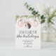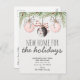 Inform for family and friends and say happy holidays on the same card with our "New Home for the holidays" postcard. The design features some christmas tree branches and ornaments hanging with chic bows. Personalise with your information front and back.