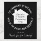 Say thank you in style to housewarming party guests with these custom wine labels. All text is simple to personalise. Black and white design features chic modern minimalist house silhouette, inspirational friendship quote in a circle, and personalised script typography name(s) in centre. Trendy and stylish design makes an elegant finishing touch to your new home celebration. Quote reads: "The ornaments of our home will be the guests who frequent it."