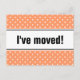 New home moving postcard coral pink and white polkadots Custom moving text; We have moved! Add your new address on the back. Modern moving cards for home and business.