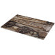 This unique glass cutting board is decorated with our original photo of an old rustic log cabin and rusty wagon wheels. It is a great housewarming gift! This pattern looks good on either size of the rectangular cutting board. It is personalised - you can easily modify or delete the example text. All Rights Reserved © 2013 Alan & Marcia Socolik