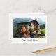 Announce the "new home" good news to friends & family with this cute photo postcard! Zazzle's editing design tool includes AI background remover, so YOU can easily add your family photo to your house photo to get the same look! Or take a selfie with your house. Or just use your a house photo plain. Front & back text customisable.
