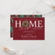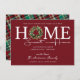 This festive moving announcement features the saying "Holiday Greetings from Our New Home Sweet Home" with a pine branch and pine cone wreath set on a red background. The announcement is perfect for sending to friends and family during the holiday season to let them know about your new address. The front of the announcement features the saying and wreath, and the back of the announcement has a coordinating