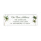 New Home Tropical Palm Trees Return Address Label... Our tropical themed moving announcement return address label features three watercolor palm trees bordering your announcement text and new address details. Example text reads "Our New Address" in elegant script typography with your name and new address below. You can easily revise all text using the personalisation template.