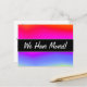 This postcard design features a fun, rainbow-like multicolored gradient pattern featuring various shades of colours like yellow, orange, red, pink, purple, blue and green. It also features the message "We Have Moved!" on the front, along with a customised message on the back containing the new contact information. It could be used to let friends, relatives, and others that a family has moved to a new house.