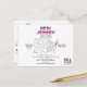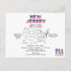 New Jersey. The state of the United States of America. Marked red on the USA map. Useful info about the capital, the largest city, the time zone, as well as about the highest and the lowest points. The number of the population, state's name before statehood and the date of admission to Union, nickname, motto and the state's song. Words New Jersey are decorated with the American flag of blue, white and red colours. Customisable text 50 STATES and the image-text USA at the bottom right corner on the front and on the back. Customisable template text on the back. You can change or delete template texts and you can use your own logo instead of the USA image. This is a postcard for anyone. You can transfer this design to another product of your choice, just use an option to the right of this description. Enjoy and be happy!