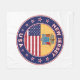 Badge of New Jersey with flag of New Jersey and flag of USA colours, rounded shape.