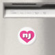 This magnet features a vibrant hot pink heart containing the bold, rounded, white lower case letters nj, a playful version of the abbreviation for the state of New Jersey, the garden state.