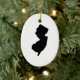 The shape of the state of New Jersey in black and white. You can change the background colour or add a custom souvenir text message.