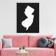 The shape of the state of New Jersey in black and white. You can change the background colour or add a custom souvenir text message.