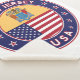 Badge of New Jersey with flag of New Jersey and flag of USA colours, rounded shape.