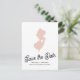 Modern NEW JERSEY State Destination wedding save the date with NEW JERSEY State silhouette in blush pink with with heart, save the date in a contemporary font and your name and wedding date along the bottom. On the back a space for a custom message and your return address.