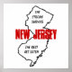 The funny saying on this poster with original art depicting the state of New Jersey says that NJ is not for wimps. In New Jersey, only the strong survive. The rest get eaten. This funny poster with original design makes a great gift for men, women or children living in the Garden State or for anyone who's been to NJ. Get laughs and make a statement when you hang this cool New Jersey poster on a wall in your home or office.