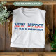 Customisable Patriotic New Mexico The Land of Enchantment T-shirt for men or women, featuring a red and blue design. May be personalised with your own text. Choose "Personalise this Template" to customise, or you may keep the design as is by leaving the text fields blank. This design is also available for all products including sweatshirts, children's clothing, mugs, tumblers, and more. #zazzlemade