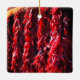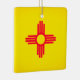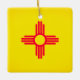 Square ornament with an image of the State Flag of New Mexico on the front and an image of red chiles ristra peppers on the back.