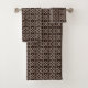 Rich dark brown tones define this original African inspired pattern printed on this towel set to give your bath a unique look.