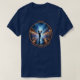 I give wanted to give this a 4 instead of a 5 because these Basic DARK T0shirts run unexpectedly SLIM or Narrow. Which is great if you do not have a potbelly, but I have a paunch. It isn't the shirt's fault that I've got a beer belly. The design and shirt itself is a quality cotton shirt. The color is more of a deep purple, but still a very pretty color. The Basic DARK T-shirts run a bit SLIMMER than the Basic Ts. The neck is a fraction narrower (or seems to be narrower) also. I'm a paunchy middle-aged woman and my neck is 12 inches (31cm) thick and the neckline fell about the same as in the photo of the man, and I had the desire to tug it a bit. So if you're a thick necked man or like loose shirts, be aware these are slimmer shirts. Once I get rid of my lockdown paunch it'll look great. The shirt washed well in cold water with no apparent bleeding. We don't have a dryer, so it hung dry. Did not shrink. Love the colors and the design. The design looks smaller on my shirt than it does on the model on-line. But still, it looks good on the shirt. The printing looks as it does on the model, just the size seems fractionally smaller. Washed garment in cold water, hung dry and design appeared unaffected.