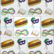 New Orleans LA NOLA Mardi Gras Beads Food Mask Fabric
