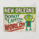 A funny New Orleans Louisiana vintage travel postcard featuring a friendly robot with fun retro style text that says, "New Orleans, Robot Capital of the world!"