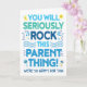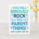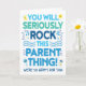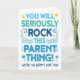Congratulate the new Parents-to-be with this fun, colorful typography design card featuring the message, "You will seriously ROCK this parent thing! We're so happy for you!" Type is accented with watercolor baby item illustrations, music notes, stars and smiles. Inside has this message, but can be customized with your own personal message.