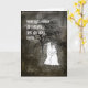 The design is a dark background with a scary tree, and two ghost parents holding a new ghost baby. The ghosts have a glow around them. Perfect card for new parents on Halloween.