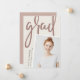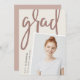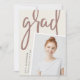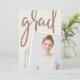A modern photo graduation announcement features a vertical or portrait orientated photo with a slight tilt for a fresh look. Personalise with the graduate's name, school, and graduation year. Add a personal message to the back, along with an additional photo.