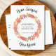 This autumnal moving announcement card is decorated with a watercolor fall wreath in russet shades.