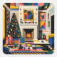 A vibrant, modern Christmas scene blending Memphis Style, New Wave 1980s shapes, Mondrian-inspired color blocking, and Roy Lichtenstein-style pop-art textures. This bold holiday scene features a decorated tree, glowing fireplace, and graphic patterns that make your greeting feel energetic, artistic, and unforgettable. Perfect for design lovers who appreciate a little flair with their festive cheer.