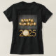 "Elegant Happy New Year 2025 T-Shirt Design with Gold Balloons and Clock"