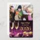 New Year 2026 Purple and Gold Champagne Photo Holiday Card