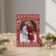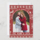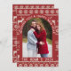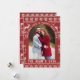 Celebrate the New Year in style with this modern and on-trend card design. It features an elegant arch-shaped photo frame, curved contemporary typography, and beautifully hand-drawn winter foliage accents—creating a fresh and stylish look for your 2026 greetings. Background inspired by traditional Scandinavian sweater motifs, this design features charming reindeer, snowflakes, and geometric knit rows for a warm and festive winter aesthetic.