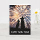 New Year Cat Dog Party Hats Fireworks Wishes Card