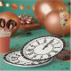 Clock with Roman numerals on fireworks with gold confetti falling for New Year's Eve party.