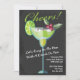 New Year party invites .. ring in the new year with a drink or two featuring a green cocktail in a glass with a sprig of holly and berries - party invitations from Ricaso