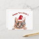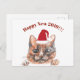 Cute cat with Santa hat New Year custom text greeting card.