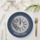 Midnight clock on a full moon with stars on dark blue sky background for New Year's party.