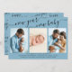 New Year New Baby Elegant Script 3 Photo Blue Holiday Card