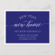 These dark blue and white, elegant and stylish moving announcement postcards say "new year, new home" in a mix of trendy modern script and slab serif text. A white border adds a touch of elegance. The perfect way to wish family and friends a happy new year while letting them know you have moved!