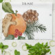 A charming watercolor illustration depicting a festive New Year’s tree adorned with colourful ornaments and twinkling lights, surrounded by fresh mandarins .