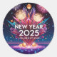 A vibrant and cheerful New Year 2025 sticker designed to spread joy and eco-conscious vibes. The design features bold, colourful fireworks in shades of green, blue, and gold, symbolising a sustainable and bright future. Elements like wind turbines, solar panels, and lush greenery are seamlessly integrated, reflecting the theme of renewable energy and environmental harmony. Perfect for adding a festive and meaningful touch to your celebrations!