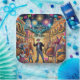 Immerse yourself in the festive spirit of Latin America with this captivating illustration. This vibrant scene depicts a lively village coming together to ring in the New Year. Colourful traditional clothing adorns the dancing figures, while festive decorations like twinkling lights, confetti, and streamers create a magical atmosphere. At the centre of the celebration stands a smiling elderly man, symbolising the passing of the old year. He holds cherished tokens representing a prosperous year ahead: a bundle of wheat, a piggy bank, and a small house. The background bursts with fireworks illuminating the night sky above charming colonial-style buildings. This joyous artwork captures the essence of the celebratory spirit and the hope for a bright new beginning.
