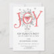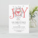 Whimsical unique illustrated JOY typography New Year's Eve cocktail party invitation. A unique style for your celebration. Quirky joy type, pine boughs and cocktail.