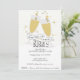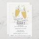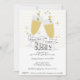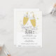 Beautiful White Background new Years Eve Night Party Invitation featuring, "Bring On The Bubbly" appears at the the middle in black, Champagne Glasses with bubbly bubbles. Customise with your personal greeting, family names and individual names.