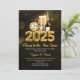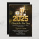 New Year's Eve Party 2025 Black Gold Champagne Invitation