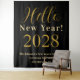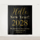 This is a modern and chic, New Year's Eve Party celebration design. It is in elegant black and gold with a modern typography script design. It has the message, "Hello New Year! 2028" with space for you to add the year of celebration, your name (the hosts) and the date and location of the party. Ideal for welcoming your guests to your party and ideal as backdrop, To personalise, simply add your name, the celebration year and party information, by using the personalise this button, here you can also change the rest of the text if you want to. Check out the design editing tool to change the colour or font. If you need help with personalisation, matching products, or for a custom design, contact me via zazzle chat or email: ursuladawnmoon@gmail.com