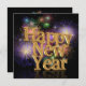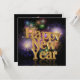 New Years Eve Party firewworks Invitation 3D gold text with digital fireworks over black background. Customisable.