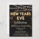 New Years Eve Party Gold Black Balloon Lights Invitation