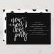 This simple New Year's Eve holiday party invitation features the words "new year's eve party" in a modern white script on a black background. Your party details sit to the right in white. The background is a bold black and white polkadot pattern. Keep the background as is or using the customise it option, you can delete it and chose a colour from the palette or use your own hex number.