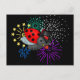 The New Years ladybug is ready for the New Year dressed in a top hat with a noise maker and fireworks.